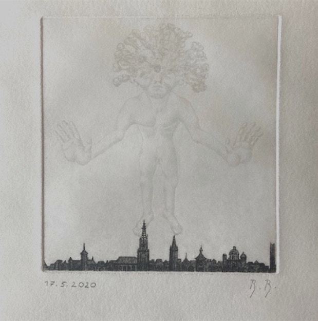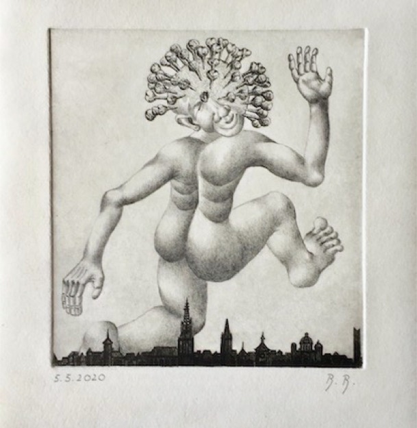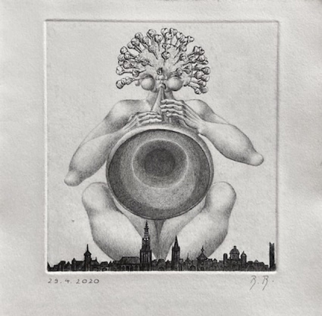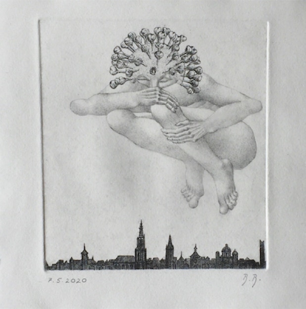 technique: etching + pencil