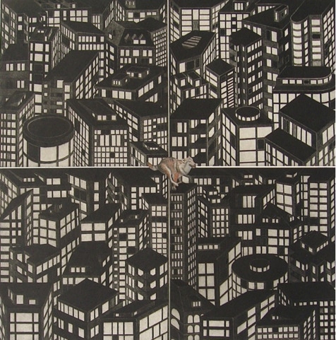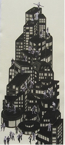 The printed impressions were then cut apart and reassembled in alternating puzzle combinations.
