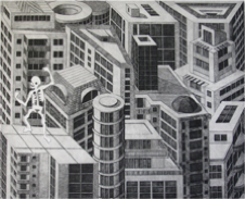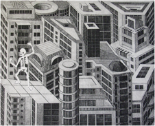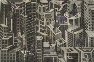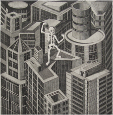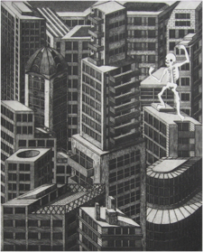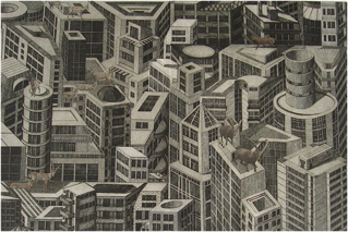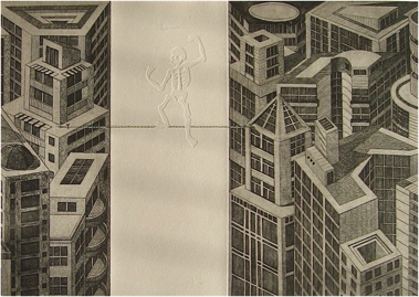 technique:etching,aquatint scraped, collage (Puzzle snippets of 7 plates)