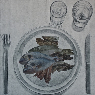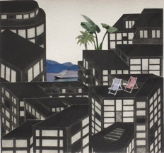 Technique: Aquatint scraped, soft ground, chine collé, Paper: 48 cm : 48 cm, Edition: 7 uniques